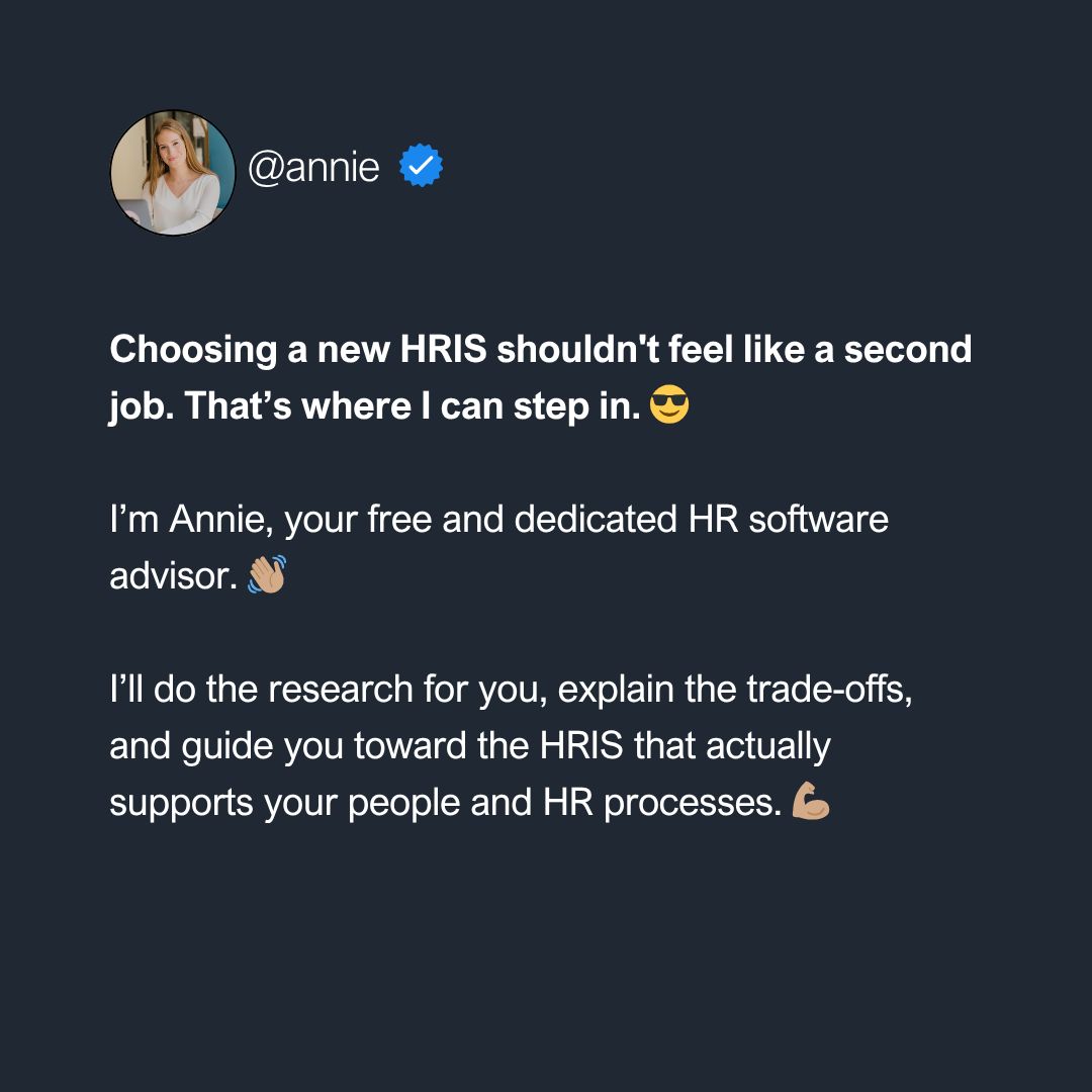 Tell Annie what you need: Your free HR Software Advisor listens to your HRIS needs, must-have features and budget.